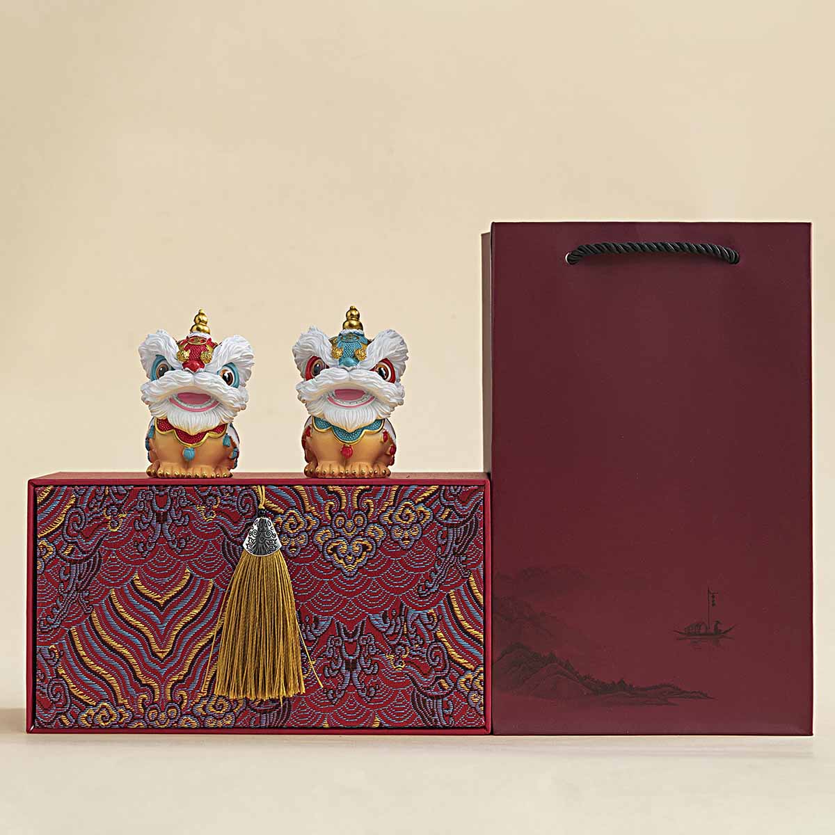 El león de danza simboliza la prosperidad. La base oculta un sello de "riqueza y fortuna". Es un regalo elegante para clientes o amigos cercanos, con una apariencia lujosa pero a un precio asequible.
