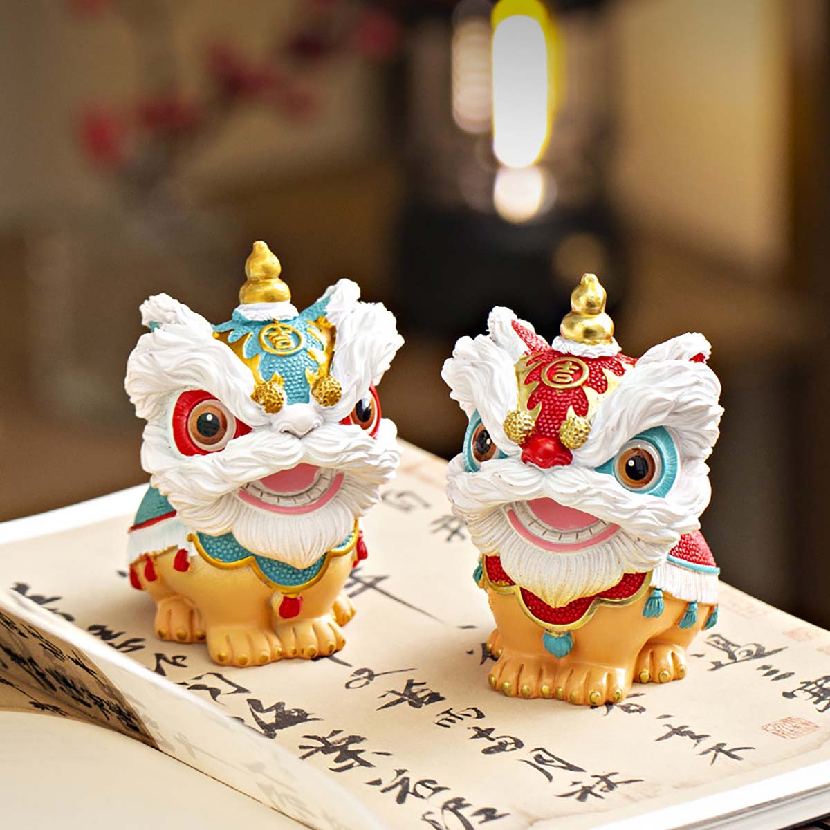 Adorno creativo de león danzante al estilo chino, una pieza decorativa de alta gama y diseño exclusivo para mesas y mesas de té.
