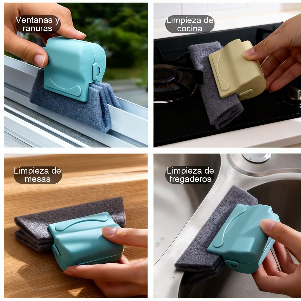 💧 Uso en seco y húmedo · Limpieza sin marcas — En seco elimina el polvo, en húmedo quita la grasa; un solo cepillo para resolver todas las tareas del hogar.