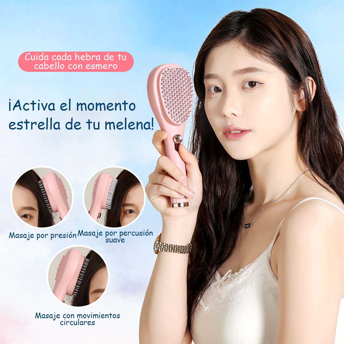 💆 **Tres ritmos de masaje** — Presionar, golpear suavemente, y hacer círculos, 20 cerdas de punta redonda y felpa, 360° de masaje que relaja el cuero cabelludo, da volumen en la parte superior de la cabeza.