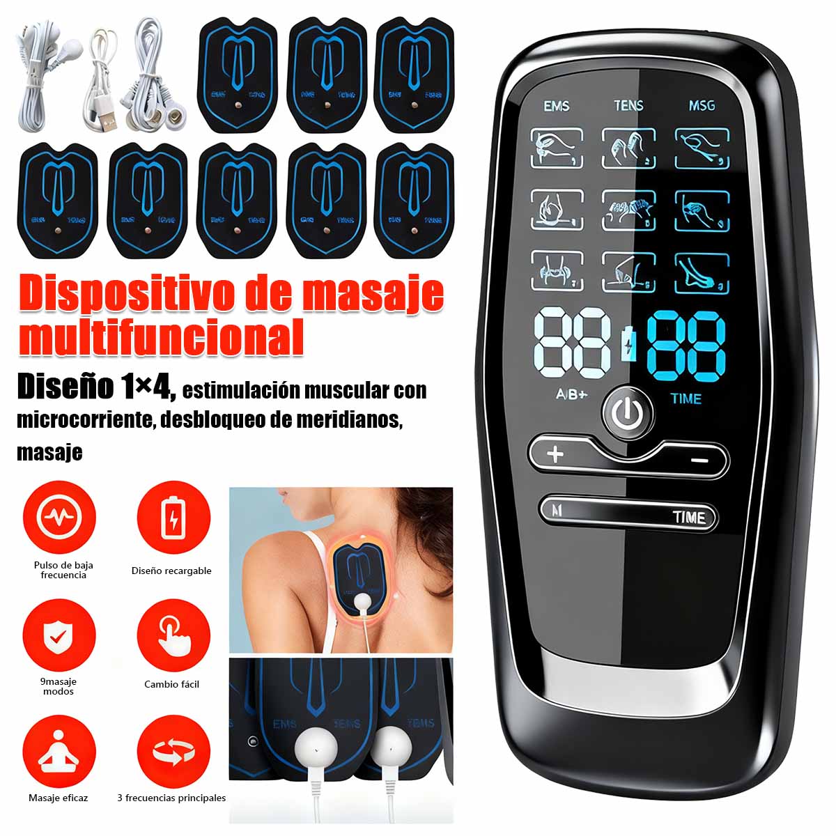 "Dispositivo de terapia TENS de doble salida, estimulador EMS, dispositivo multifuncional de terapia, masajeador de tres frecuencias, almohadillas de masaje."