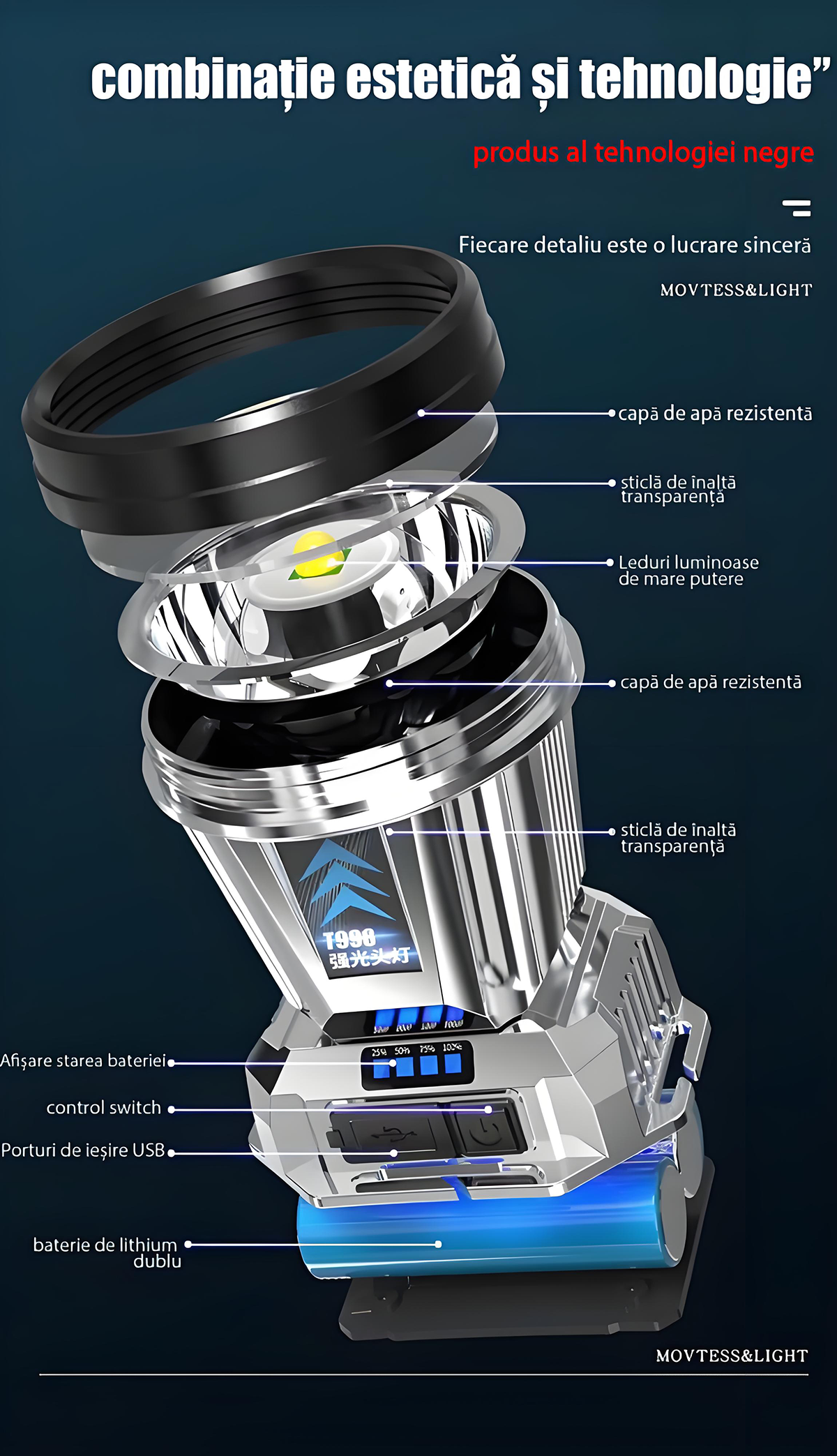 850 lm de 3× mai strălucitor | 160 m rază | 120 h autonomie