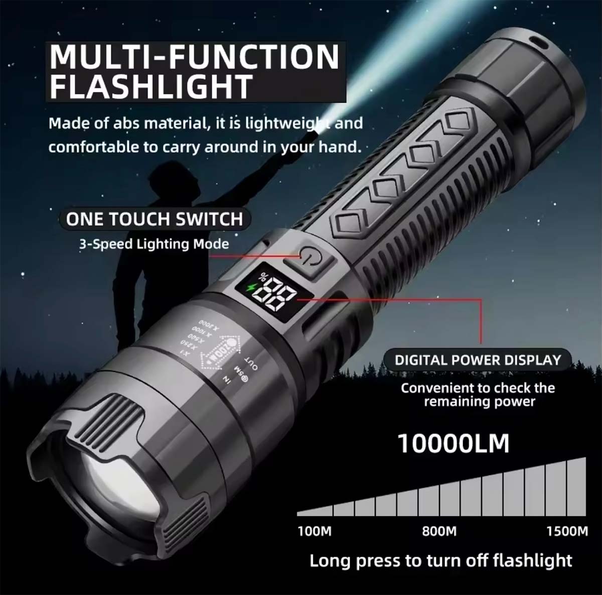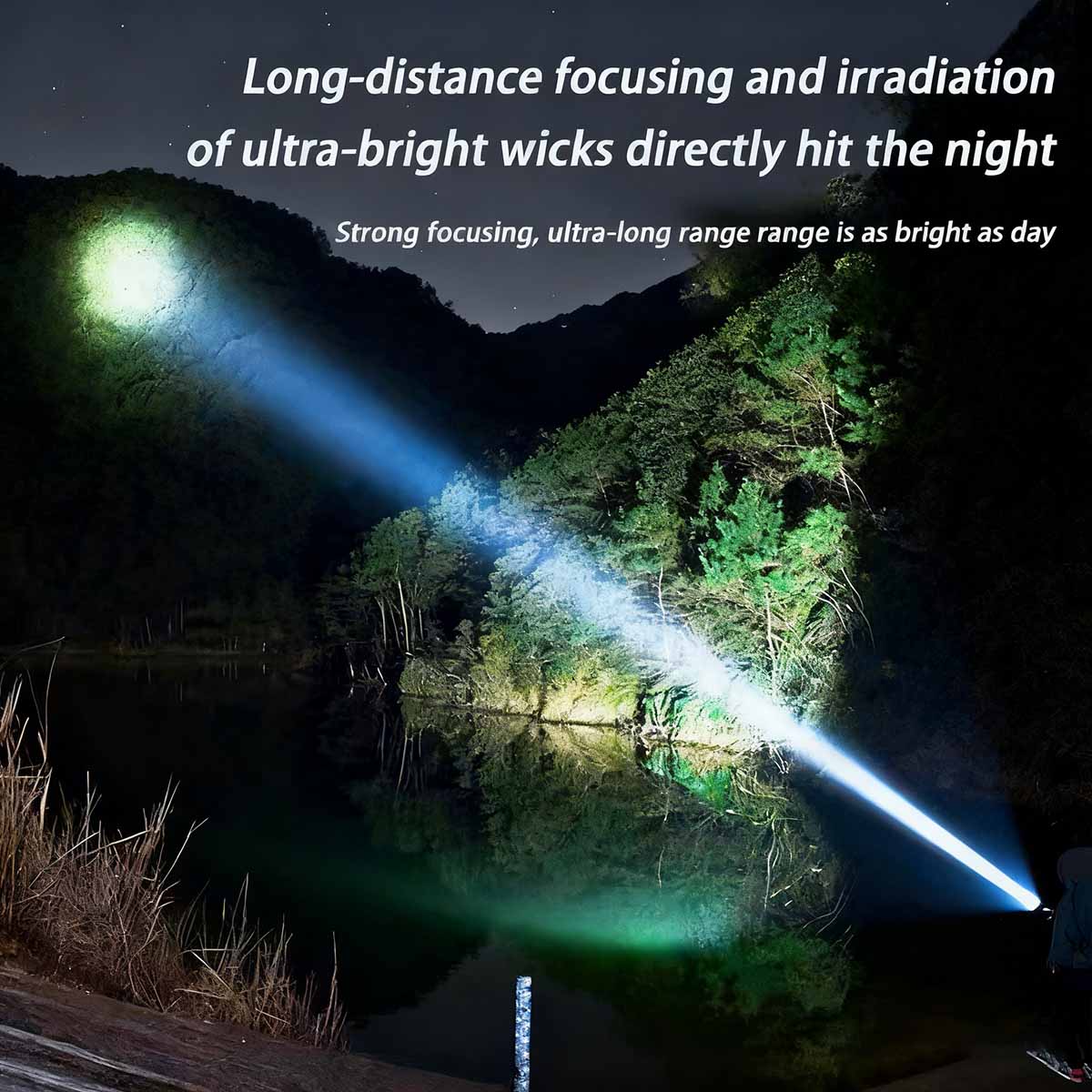 “Linterna de alta potencia recargable, portátil, de larga duración, para exteriores, de alcance lejano, resistente al agua, multifuncional y súper brillante para uso doméstico.”