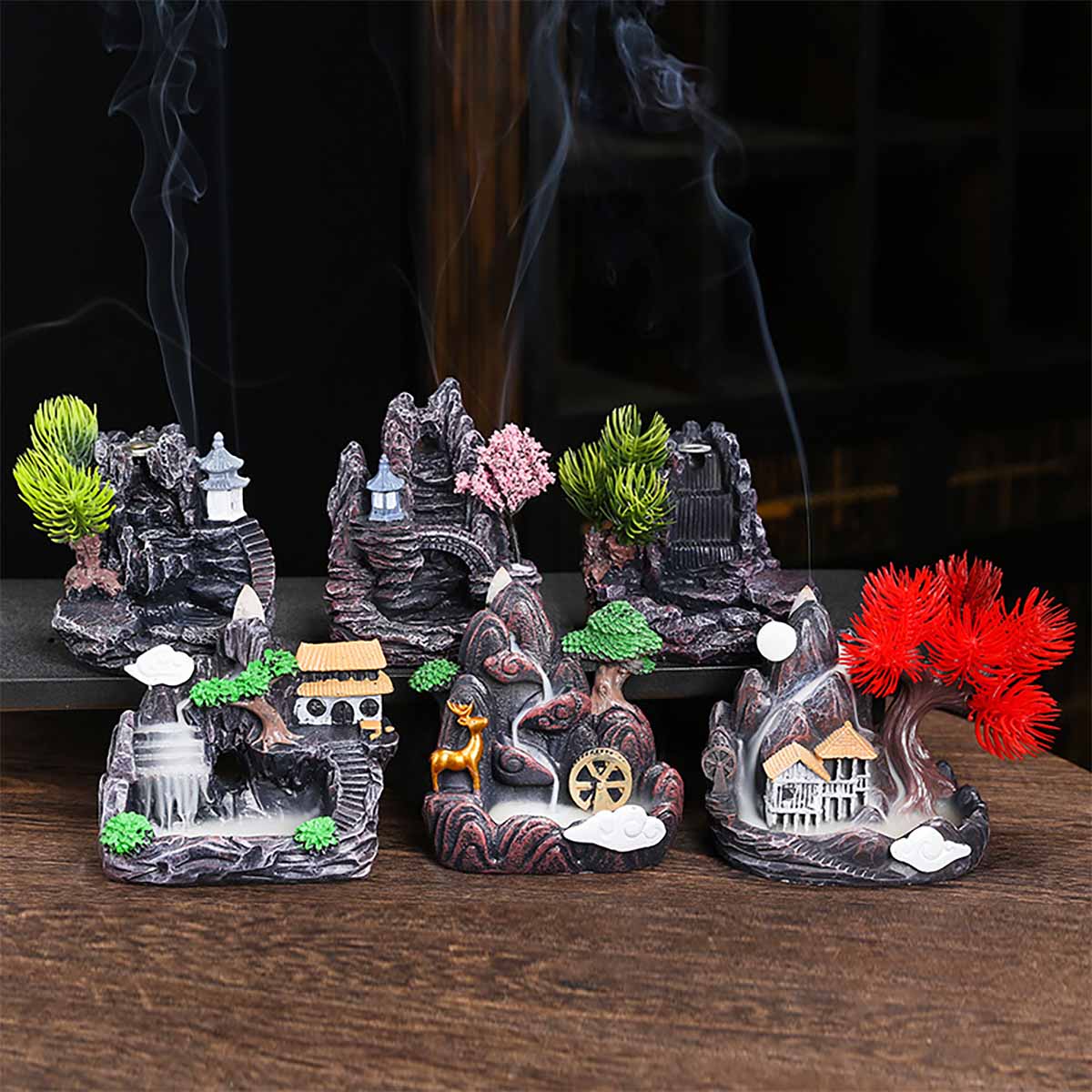 'Montaña y Arroyo Fluente': Pequeño quemador de incienso de resina con efecto cascada, para inciensos como sándalo y agar. Decoración para el hogar.