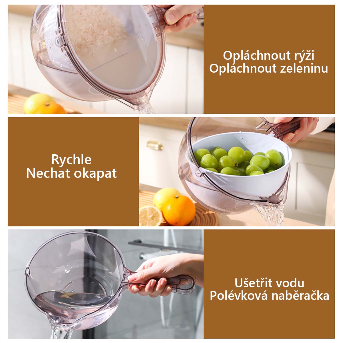 Vnitřní koš otočte o 90°, rýže, třešně nebo brokolice jsou okamžitě čisté na „úrovni surfování“, špinavá voda automaticky odtéká, ruce zůstávají suché po celou dobu.