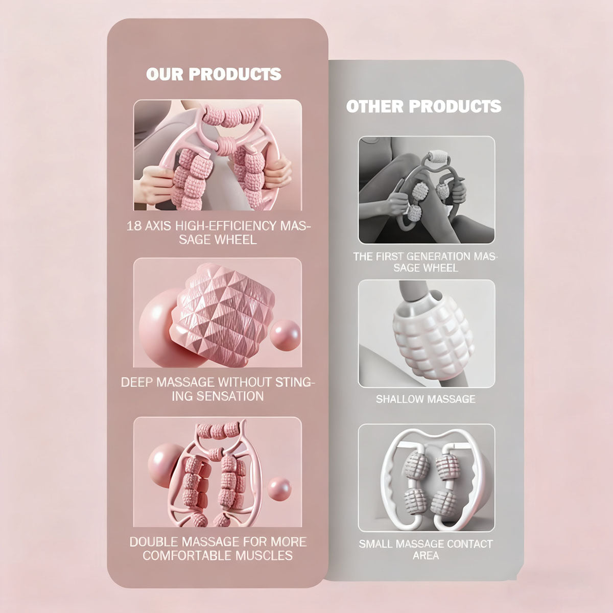 Rodillo masajeador para piernas, artefacto de adelgazamiento, rueda anular de compresión, relajador de músculos de pantorrilla y muslo, barra tipo "dientes de lobo" para masaje en piernas.